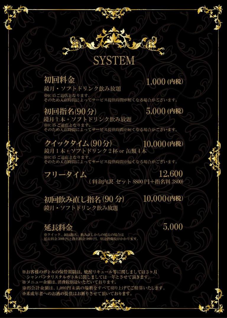 SET 8,800円 (消費税別途) 指名料金 3,800円 (消費税別途) 消費税 10%